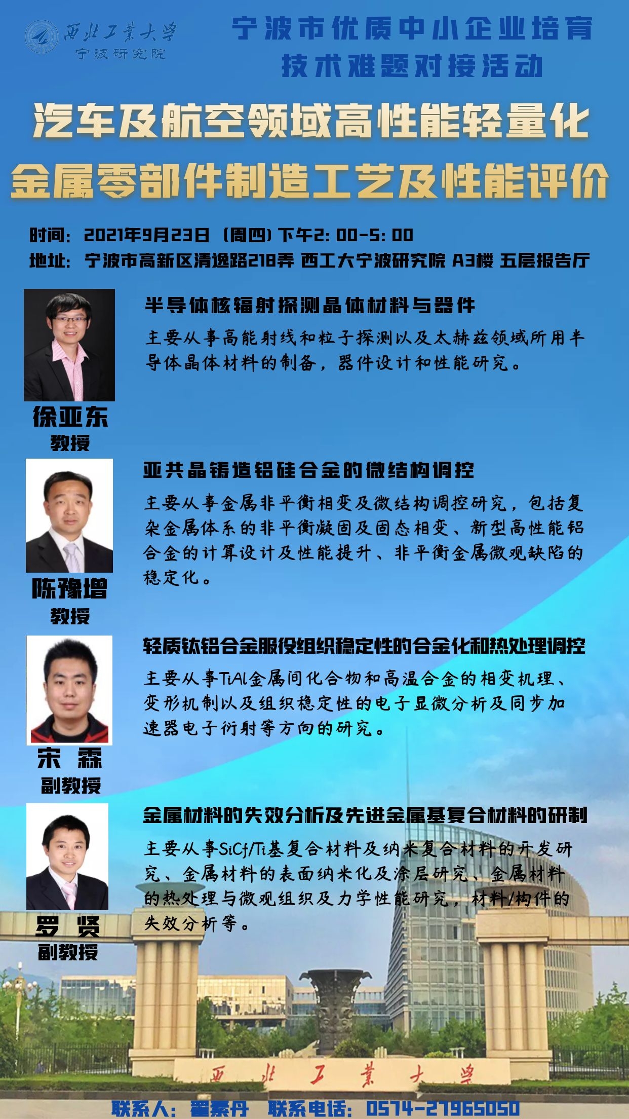 上一条:宁波市优质中小企业技术交流活动之五暨汽车及航空领域高性能轻量化金属零部件制造技术难题对接会成功举办