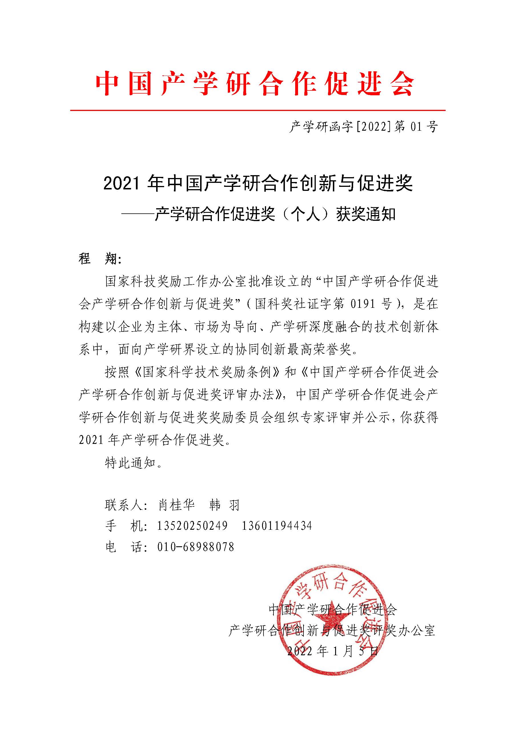 荣获“产学研合作创新奖(单位)”,程翔副院长荣获“产学研合作促进奖(个人)”,喜迎开门红!