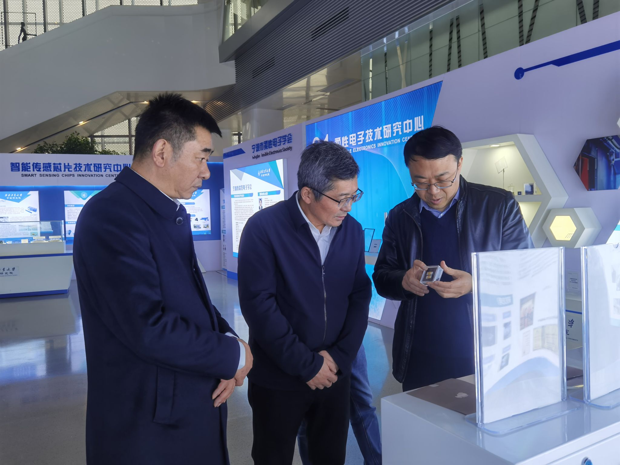 随后,陈承奎一行参观了智能传感芯片技术中心、无人航行技术中心、柔性印刷电子技术中心、柔性显示材料技术中心等研发平台。