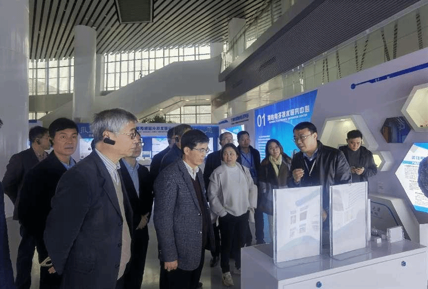 在博彩导航 展厅,市科协领导参观了柔性电子、智能芯片、民用航天、无人航行、卫星大数据等5个技术中心的科技成果。
