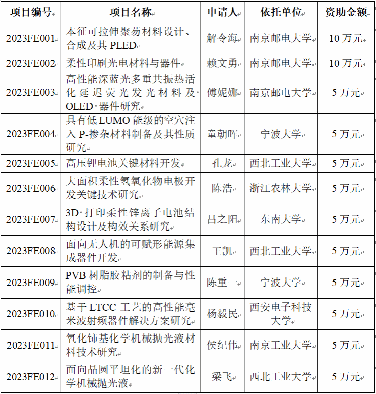 依据《浙江省柔性电子重点实验室开放基金管理条例》及《2023年度浙江省柔性电子重点实验室开放基金课题指南》,经同行专家评审,专家委员会讨论研究,实验室拟资助开放基金项目12项,总经费70万元。现将拟资助项目公示如下: