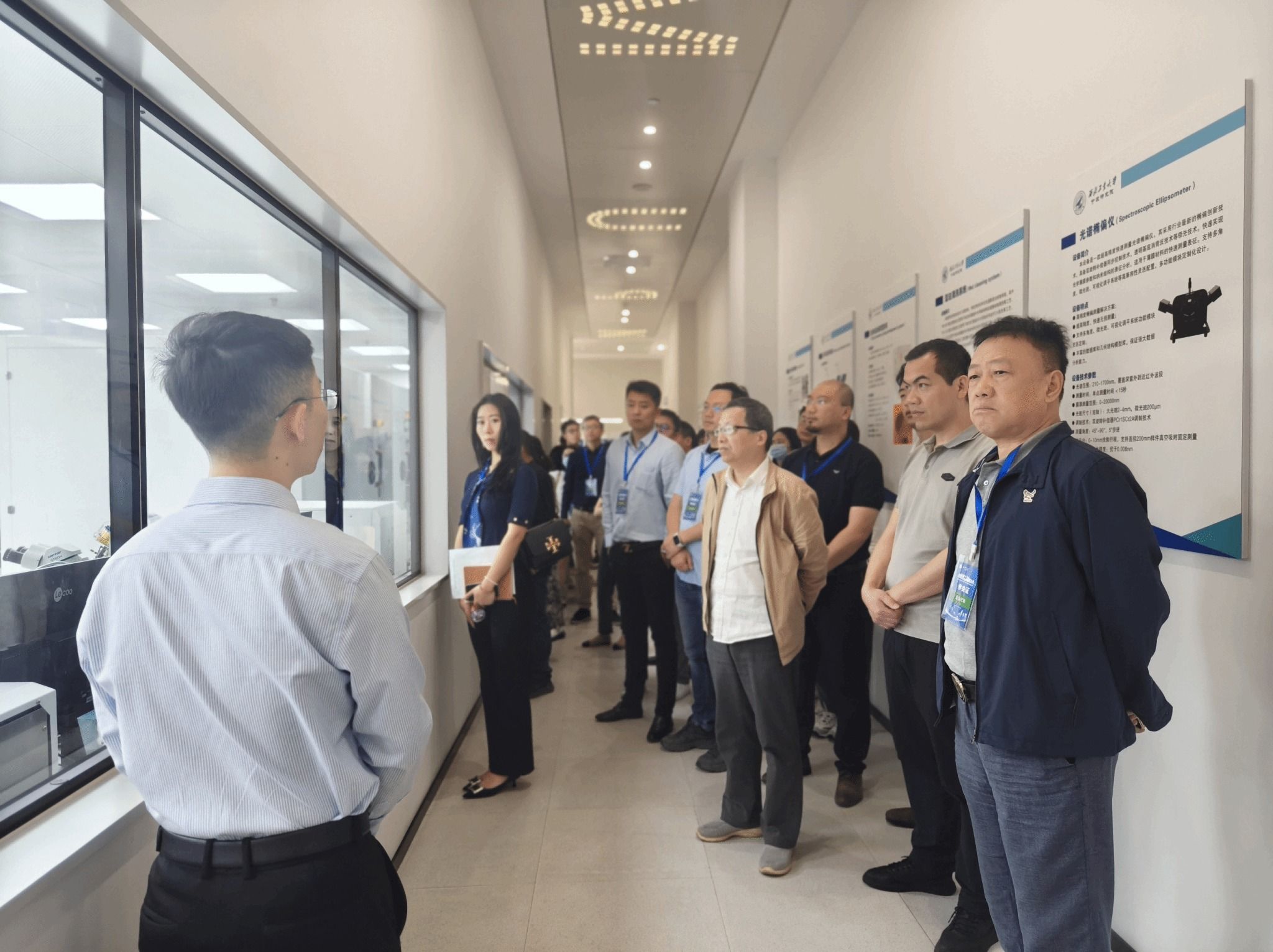 会前,大家参观了智能传感芯片、声学工程与检测、智能无人航行器、柔性电子四个创新平台,近距离接触了MEMS传感芯片、OLED发光材料、仿蝠鲼水下航行器等前沿科技成果。