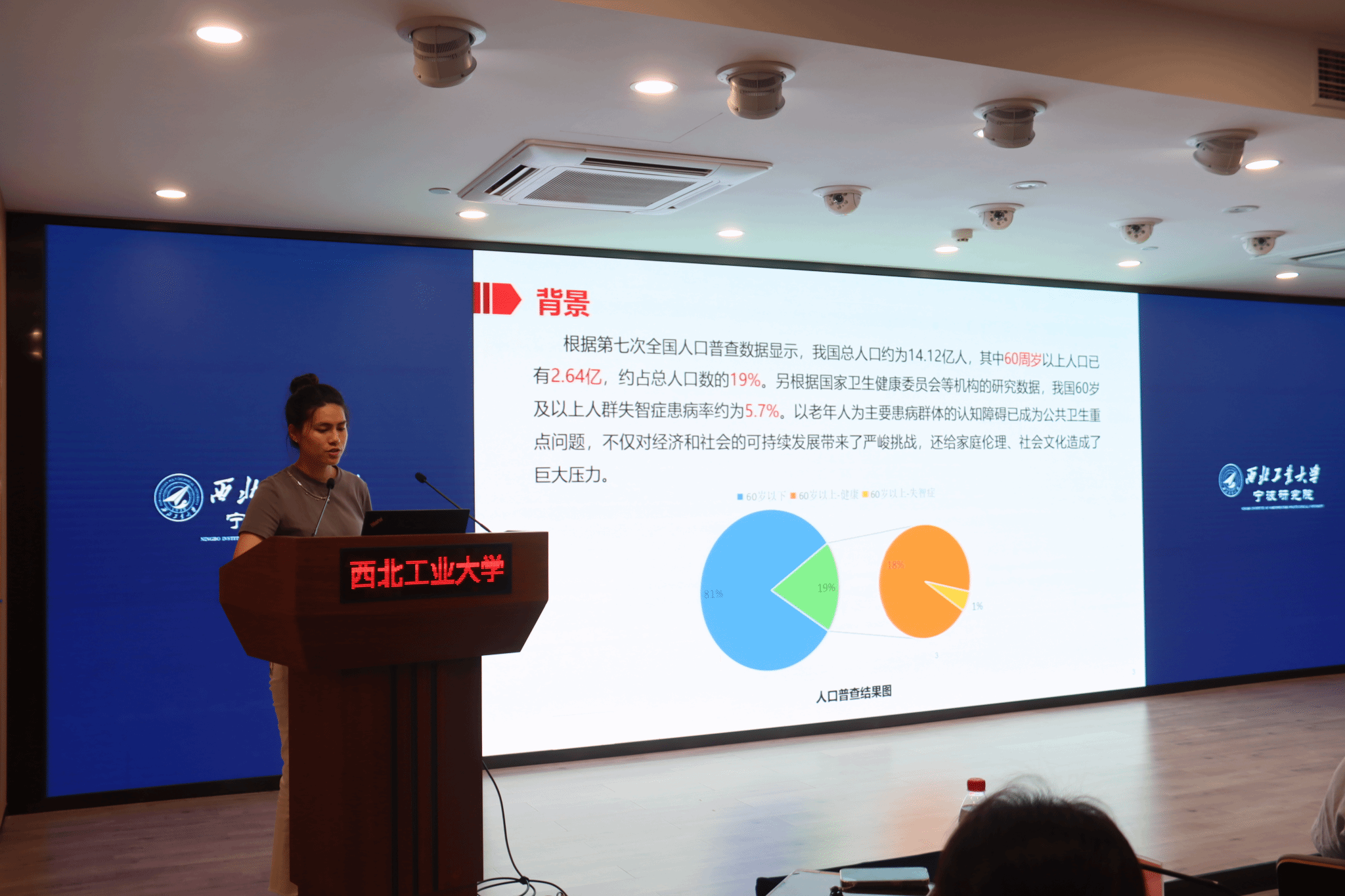 与宁波市民康医院共建的医工融合联合创新工作室成员王梦琦硕士,聚焦《AI 技术下音乐 - 脑电辅助干预技术》,分享了工作室通过 AI 技术解析音乐对脑功能的调节机制,辅助干预老年认知障碍的研究进展。