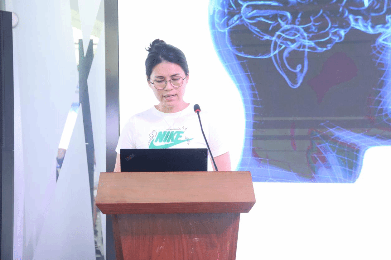 西工大航海学院硕士研究生王梦琦则带来《AI技术下音乐—脑电辅助干预技术》的报告,探讨人工智能在音乐疗法与脑科学交叉领域的应用潜力。